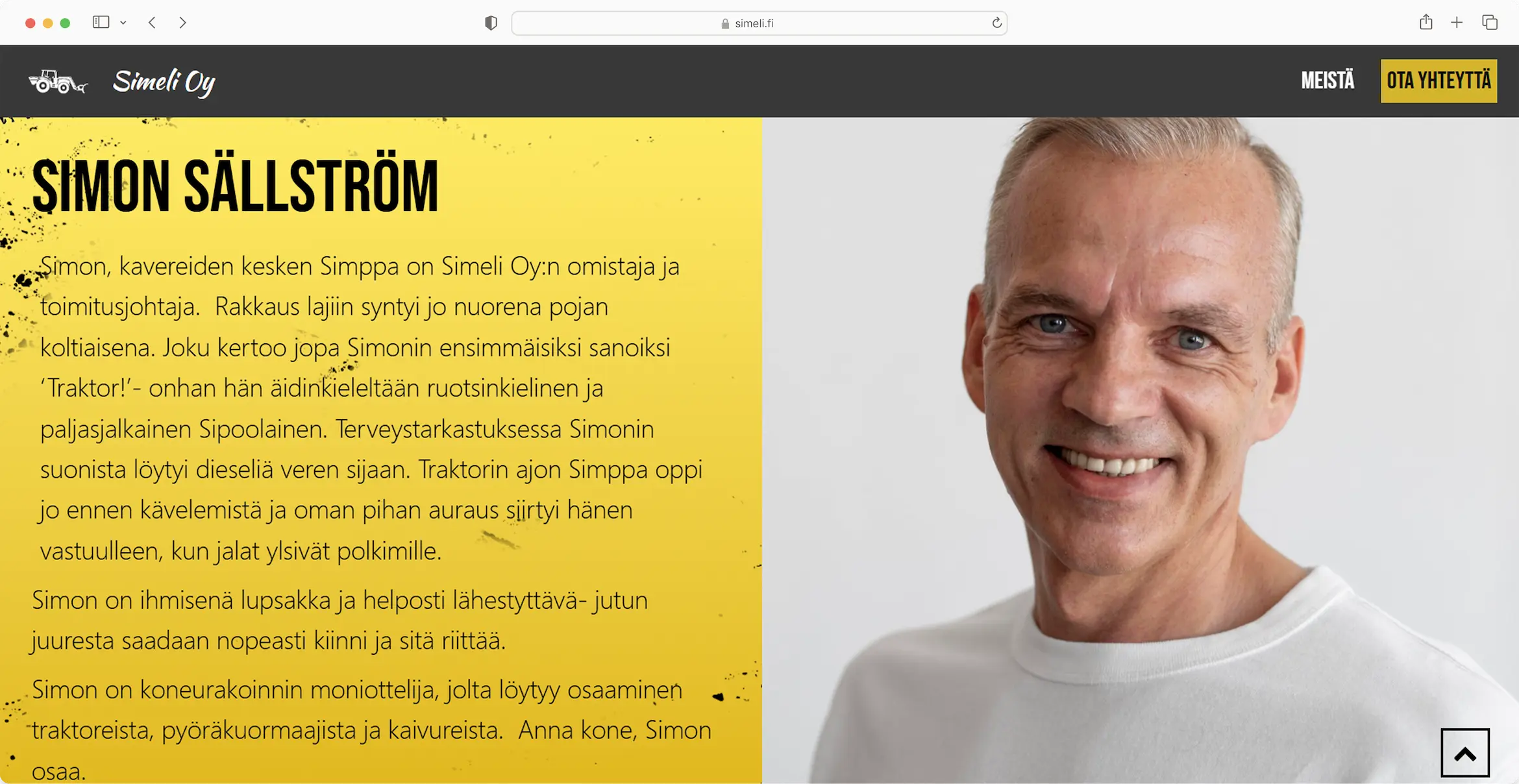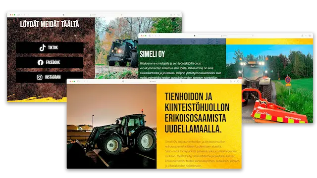 Simeli Oy serves the Eastern Uusimaa region and its services include various road and property maintenance work, transportation, and rental services. The purpose of the website is to increase bookings of their services, so that the customer would easy get in reach. Also the website is a great hub for all the company's social media platforms. The client wanted to incorporate elements they were already using in their brand's designs - the golden strip.